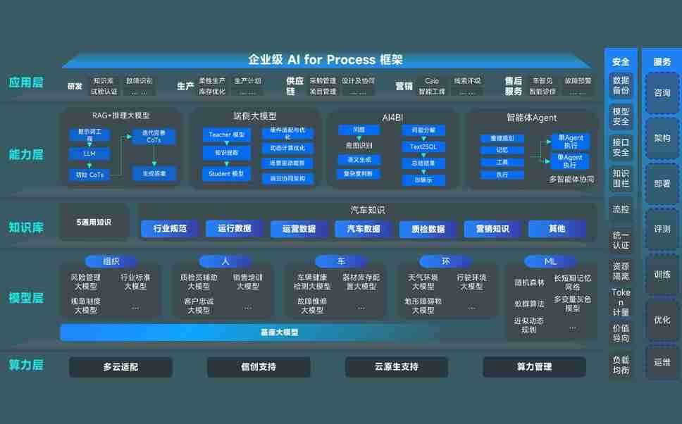 端到端的一站式AI工作空间深度融合了从企业战略规划到日常经营的全流程业务板块,,定向解决车企内部领域多、、部门多、、、、链条长、、、场景碎片化等难题,,支持车企快速构建以AI为核心的生产力写作体系,,实现任务执行与AI能力的无缝集成与交互