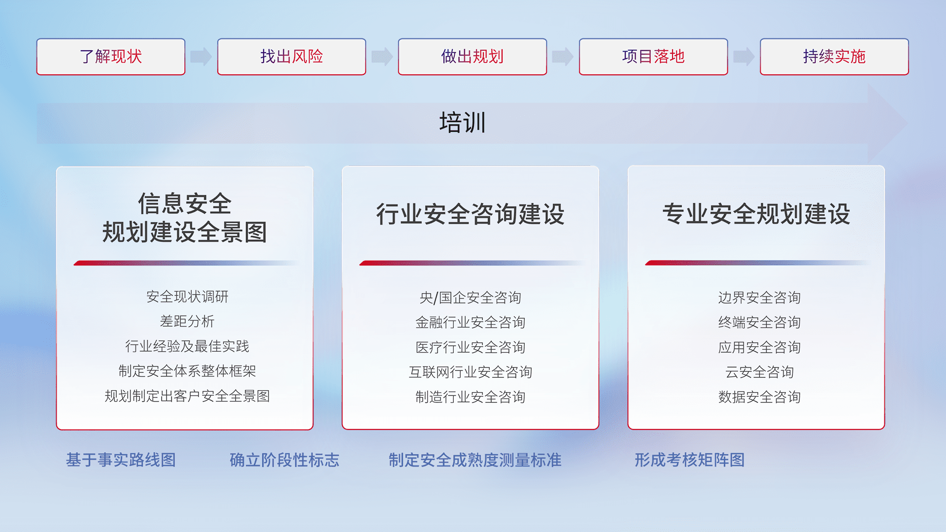 梳理客户信息安全现状调研、、差距分析结果,,结合行业先进经验及最佳实践,,,制订客户的信息安全管控体系总结架构,,最终形成一个完整的客户信息安全规划与建设的全景图。。。